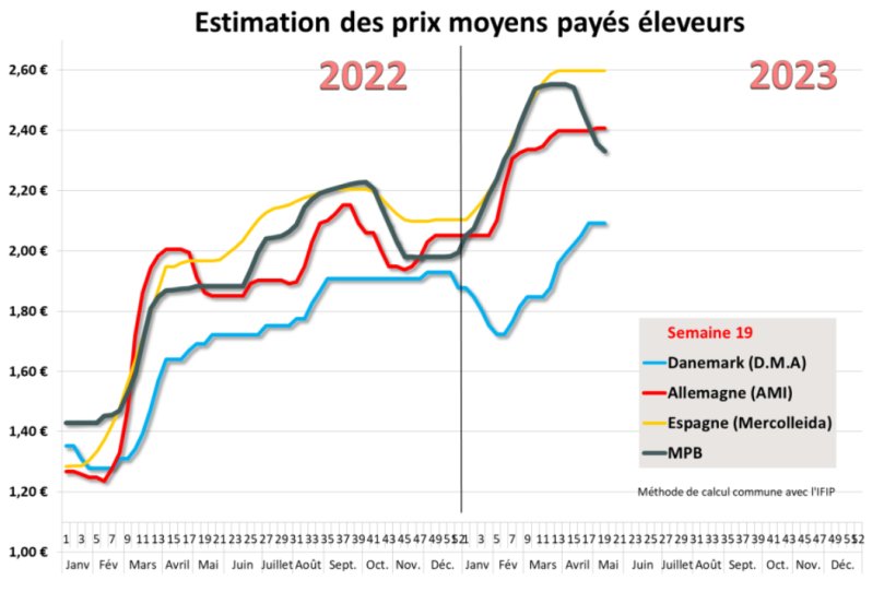 Au Danemark, le prix d’acompte a été reconduit pour la semaine en cours. Le recensement du 1er avril a révélé un cheptel total en baisse de 14% en un an à 10,425 M de têtes tandis que le groupe des porcs prêts à être commercialisés est en baisse de près de 25% par rapport au recensement d’avril 2022. Le cheptel reproducteur a diminué de 7,5 %, celui des porcelets de 11,2 %.
