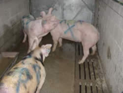 Un autre chercheur, Jeffrey Rushen s'est intéressé au déclenchement des combats. Pour lui un porcelet se lance dans un combat s'il en évalue une issue potentiellement positive. En quelques heures de contact, les porcelets apprennent vite quelle est l'issue d'un combat face à un porc donné et ne persévèreraient pas. Autre point, ils développeraient un savoir-faire dans cette évaluation de l'adversaire. Son argumentation pourrait expliquer la baisse de fréquence de combats constatés aussi par Giersing et Anderson au cours d'allotements successifs (App. Anim. Behav, 98). Le poids serait un des critères d'évaluation de l'adversaire. Ainsi, il a montré il y a 15 ans que les combats étaient moins intenses entre des porcelets hétérogènes en poids qu'entre porcelets homogènes. De plus, la présence de gros sujets dans une case semblait inhiber l'agressivité des plus petits entre eux. On peut retrouver là les conditions de travail de Suzanne Robert. Les adoptés, les moins combatifs dans cet essai étant les plus légers.