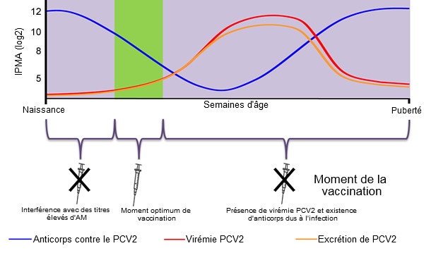 Figure 1. Détermination du moment optimum pour la vaccination des porcelets contre le PCV2