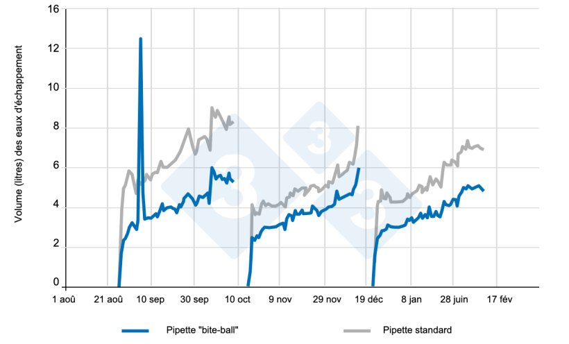Magowan et al. (2008) confirment que la dépense d'eau est significativement plus élevée avec les pipettes qu'avec les bols :