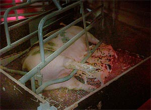| Vieille truie qui va être sacrifiée au sevrage et qui allaite peu de porcelets. Cela diminue le rendement de la place de maternité. Il est préférable de la sacrifier et d'y loger à sa place une jeune nourrice avec une meilleur capacité d'allaiter. |