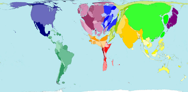La taille des pays sur la carte ci-dessous représente la part de la consommation mondiale de viandeque chacun représente. La consommation de viande fait référence à tous les produits carnés (frais ou élaborés).