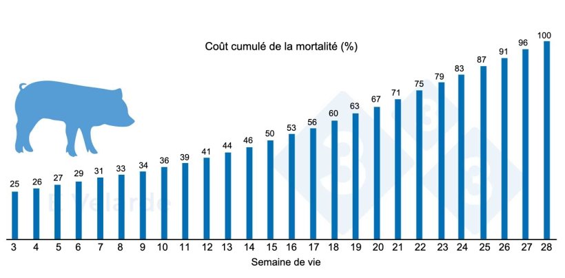 En conclusion, nous vous proposons un tableau de référence présentant les surcoûts liés à la mortalité des porcs par stade de production, qui peut être ajusté en fonction des coûts spécifiques de votre production.