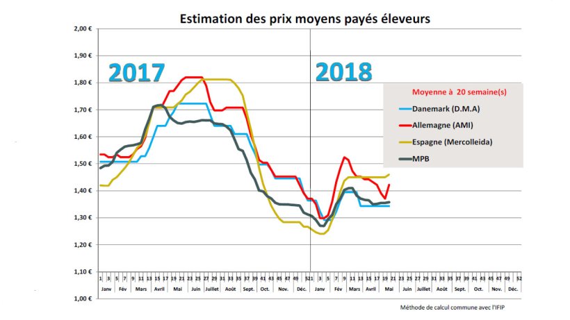 Au Danemark, le prix d’acompte reste stable depuis maintenant 8 semaines, traduisant un marché de l’export plus problématique que les marchés nationaux.