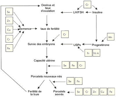 Les oligo-éléments ont des rôles spécifiques dans les différents fonctions corporelles, en agissant à différentes périodes du cycle de reproduction, pour avoir, en définitive, une action sur la taille de la portée et par conséquent sur la productivité de la truie en général.