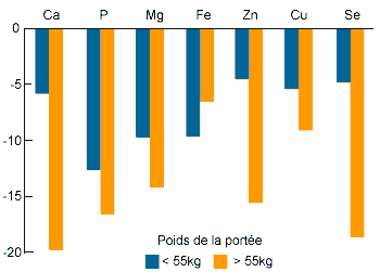 Un élément à prendre en compte est le fait que plus le poids de la portée à 21 jours est important, plus grande est la perte de minéraux pour la truie.
