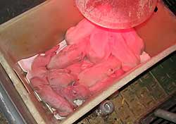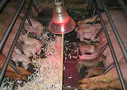 Durant les heures suivant la mise-bas, il est important que les porcelets bénéficient d'une température idéale afin qu'ils puissent, dans la case, aller vers les mamelles sans souffrir du froid: