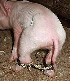 Pour les porcelets nés avec des splay legs, c'est-à-dire aux pattes écartées, il est important d'agir rapidement pour qu'ils puissent avoir une autonomie suffisante de mouvement et pouvoir ainsi se nourrir de façon autonome.