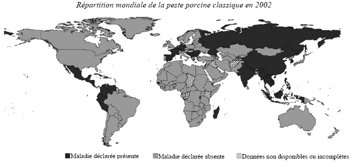 Ci-après, on trouvera la description de la situation mondiale de la Peste Porcine Classique (PPC), de la Peste Porcine Africaine (PPA), de la stomatite vésiculeuse et de la maladie vésiculeuse du porc au cours de l'année 2002; il s'agit d'un extrait des informations publiées par l'O.I.E. (Office International des Epizooties) sur les événements épidémiologiques survenus durant cette année.