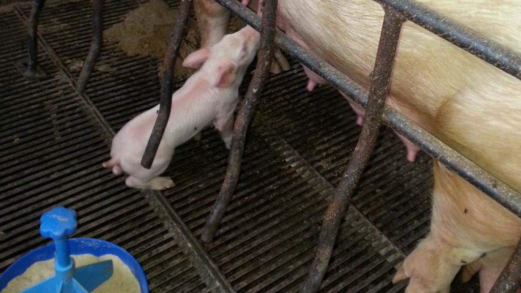 Photo 5 : attitude de porcelet affamé par hypogalactie maternelle