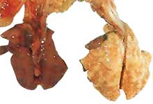 | Différence entre un poumon de mort-né (à gauche) et un poumon ayant respiré |