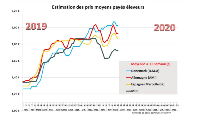 En Allemagne, l’offre de porcs a retrouvé un niveau normal tandis que la demande des abattoirs est forte. Cet équilibre a conduit à la stabilisation de la référence allemande. Après un abattage important suite aux anticipations d’annonces, les poids ont reculé de 200g en semaine 12. Sur le marché de la viande, les différents circuits de distribution sont désorganisés comme partout où des mesures de confinement de la population ont été prises. La demande du secteur de la restauration et de la consommation hors domicile s’effondre alors que le commerce de détail alimentaire connait une forte demande. Le secteur de la transformation connaît un regain d’activité pour des produits de la gamme de printemps, la proximité des fêtes de Pâques augmente les commandes. Par ailleurs, les expéditions vers la Chine reprennent petit à petit.