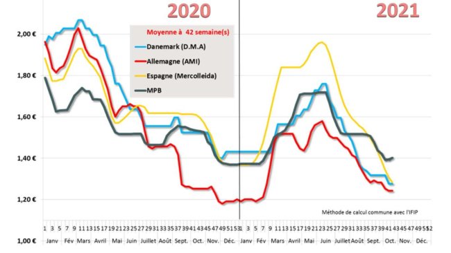 Au Danemark, la relative stabilité du prix d’acompte n’a pas résisté cette semaine à la forte tendance baissière nord-européenne et le cours recule aussi de 4 cents d’euro.