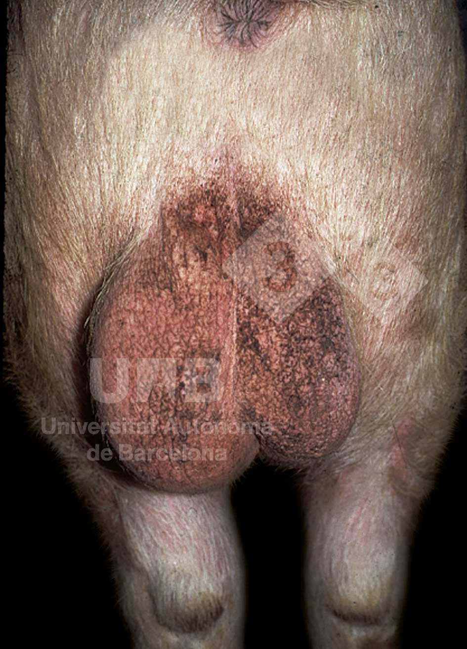 L’infection par Rubulavirus provoque la maladie de l’"œil bleu". Le virus provoque une opacité cornéenne chez les porcs infectés; les porcelets ont des symptômes nerveux et les truies un trouble de la reproduction. Chez les verrats, le virus produit une orchite unilatérale, une épididymite et une atrophie testiculaire.