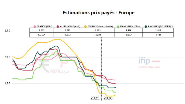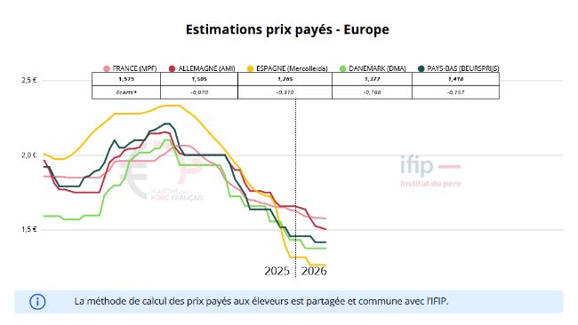 Prix stables en France et Allemagne, forte pression en Espagne à cause de la FPA, amélioration en Belgique et tensions persistantes en Italie.