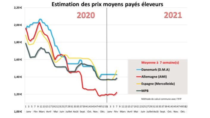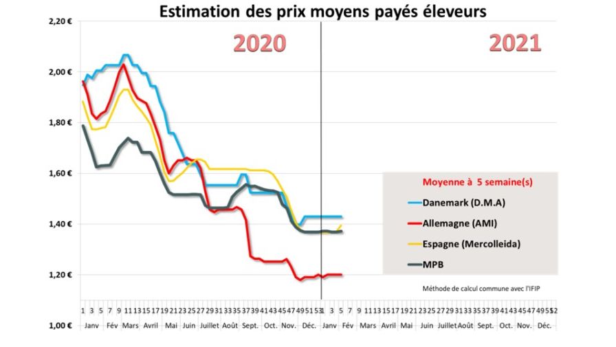 L’année 2021 a débuté sur des cours du porc stables dans les principaux bassins de production européens. Les niveaux de prix sont toutefois très bas comparés au début de l’année 2020, entre moins 30 et moins 40 % selon les pays. Les récents fériés ont laissé des reports d’abattage concrétisés par des hausses de poids importantes.
