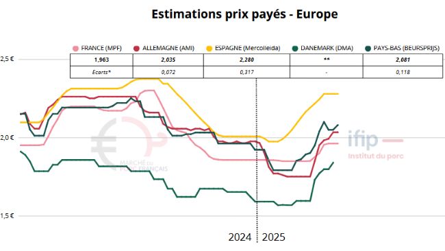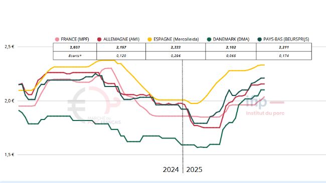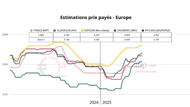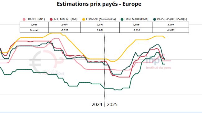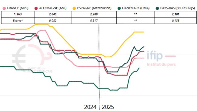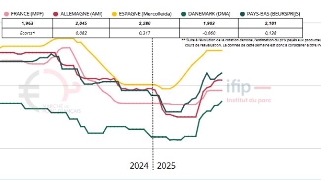 En France, la cotation du MPF poursuit sa hausse grâce à une offre réduite, tandis que l'Allemagne subit une forte pression sur le prix du porc.