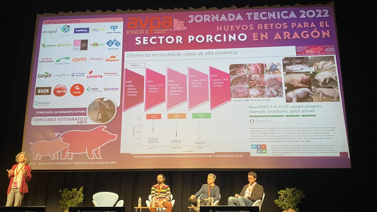Aprendiendo de PRRS en la jornada técnica de la AVPA (Huesca, Marzo’22), con 3 reconocidos expertos en la materia: Cinta Prieto (UCM), Gerard Martín (UAB) y Jordi Baliellas (GSP/Interporc)