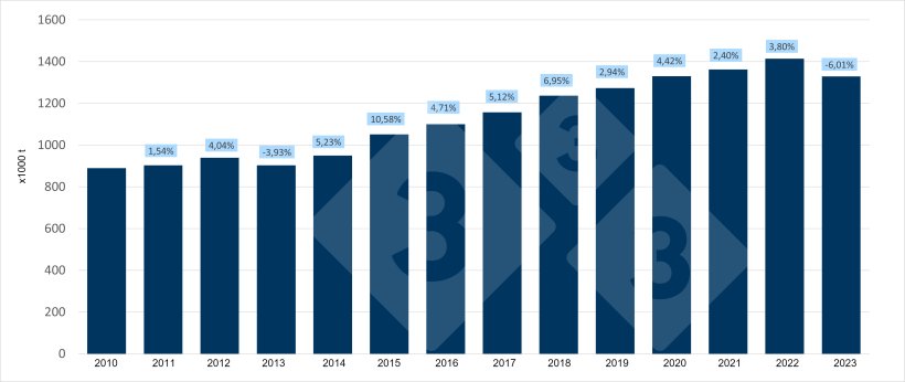 Au cours du premier trimestre de cette année, l'Espagne a abattu 14.123.423 têtes de porcs et produit 1.329.689 tonnes de viande de porc, soit une baisse de 6 % par rapport à la même période de l'année dernière.