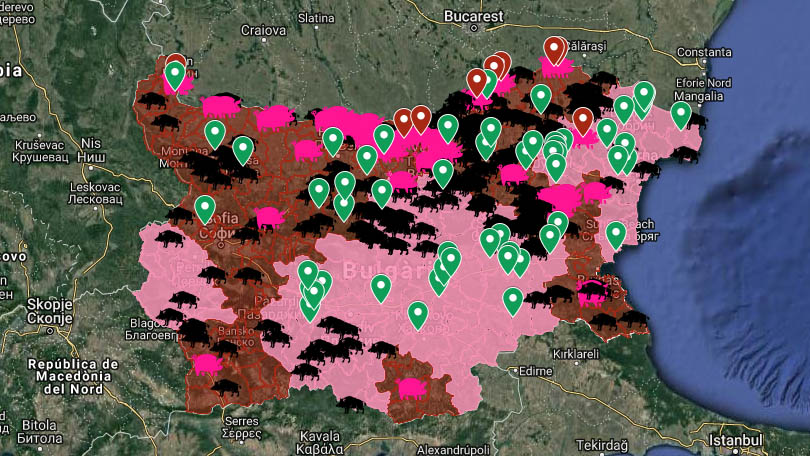 Après 6 mois sans nouveaux foyers dans de grandes exploitations commerciales, le Laboratoire National de Référence de Sofia a confirmé la présence de la maladie dans un élevage de porcs comptant 24.000 animaux sensibles situé à Nikola Kozlevo, dans le district de Shoumen.