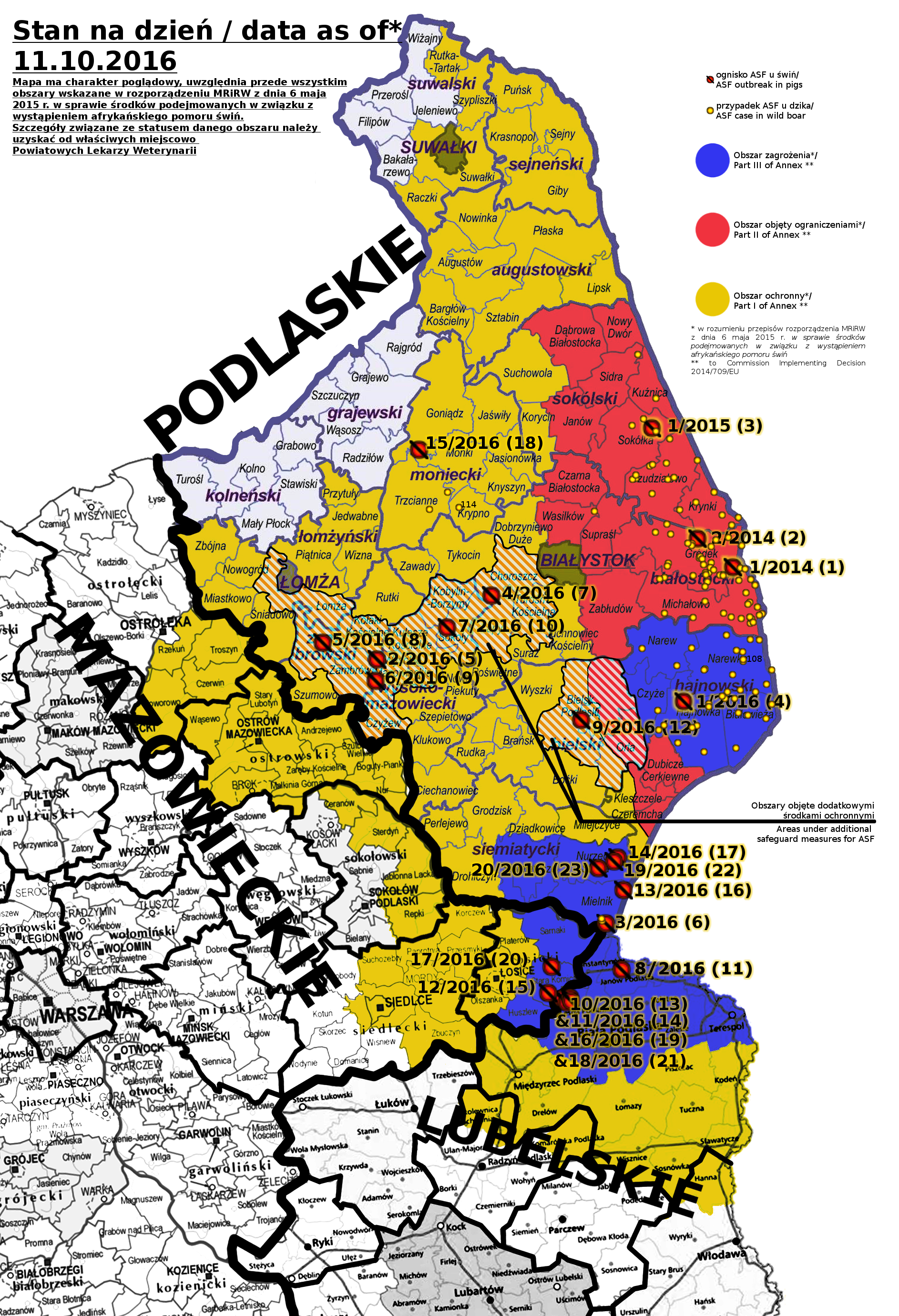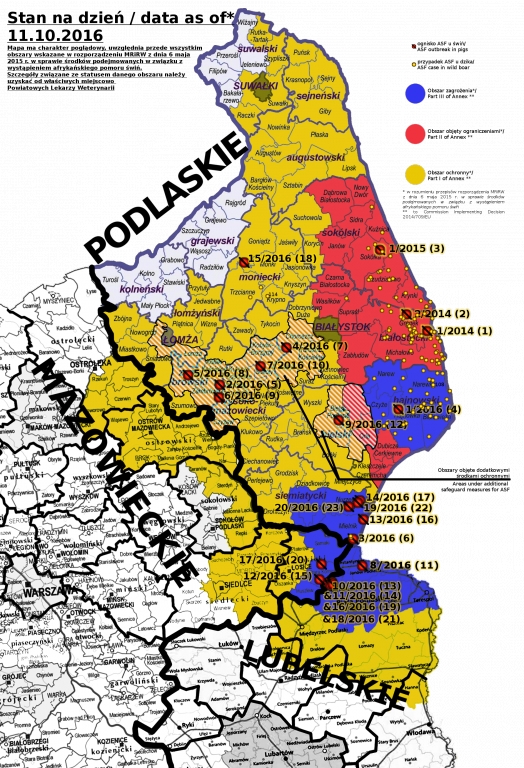 En raison des nouveaux foyers de peste porcine africaine et des dispositions de la Commission Européenne, la Pologne a élargi la zone affectée par les restrictions liées à la maladie.