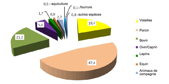Fig. 1. Pourcentage de production nationale d'aliments par espèces.