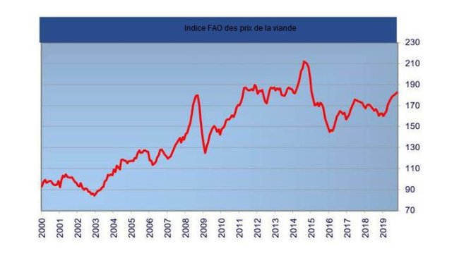 L’Indice FAO des prix de la viande atteignait en moyenne 190,5 points en novembre, soit une hausse de 8,4 points (4,6 pour cent) par rapport à octobre, la plus forte enregistrée en glissement mensuel depuis mai 2009. L’indice grimpe de 28 points (17,2 pour cent) par rapport à la même période de l’année dernière, mais reste néanmoins 21,5 points (9,4 pour cent) en-deçà du pic atteint en 2014. Tous les types de viande composant l’indice sont concernés par cette hausse, les cours des viandes bovine et ovine ayant connu la plus forte montée, dans la mesure où les faibles disponibilités à l’exportation doivent faire face à une demande à l’importation forte et persistante, en particulier de la Chine. La demande liée aux fêtes de fin d’année a exacerbé le resserrement des marchés mondiaux de la viande, tirant encore davantage les prix du porc vers le haut et entraînant une reprise des prix de la volaille après trois mois de recul.
