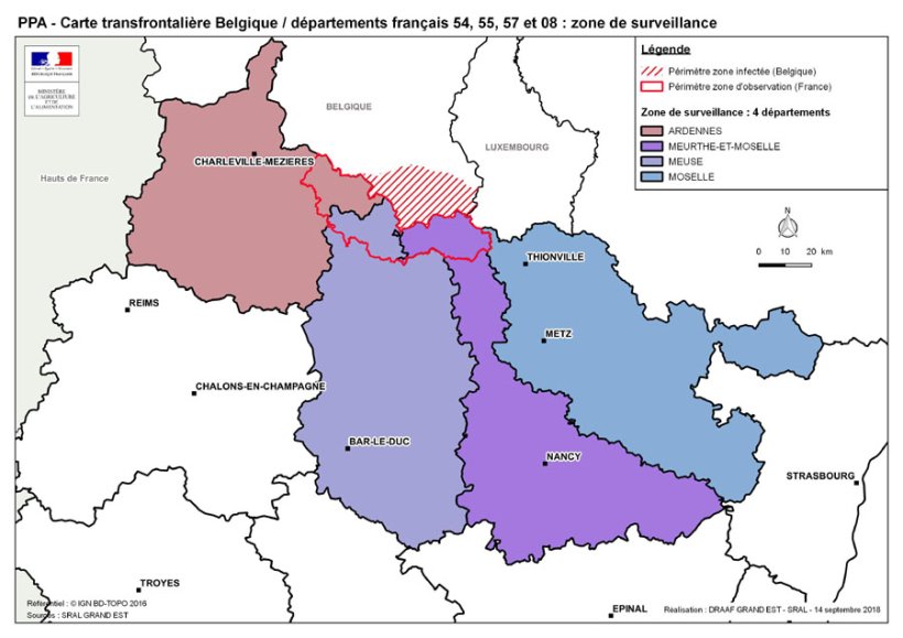 Le premier décret concerne les mesures de prévention et de surveillance à mettre en œuvre pour les activités de chasse et de sylviculture et le second concerne les mesures de prévention et de surveillance dans les exploitations porcines situées dans la zone d'intervention établie suite à la découverte de cas de PPA chez des sangliers en Belgique.