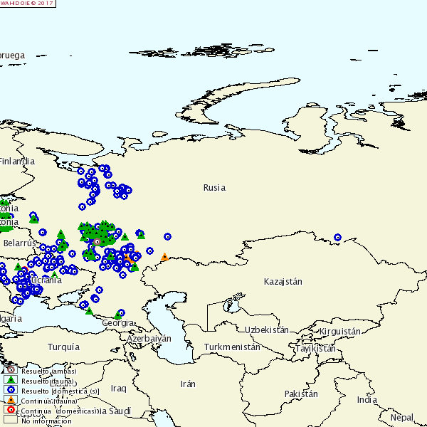 La Russie a confirmé jusqu'à présent un total de 112 foyers chez des porcs domestiques, principalement dans des fermes familiales, mais aussi dans des exploitations commerciales. On a détecté la propagation de la maladie à de longues distances, comme c'est le cas des foyers détectés à Omskaya ou Irkutskaya, ce dernier près de la frontière avec la Mongolie. La recherche épidémiologique a révélé que cette éclosion a été due à la consommation de viande congelée produite à 4.000 km de distance (Malogolovkin, 2017).