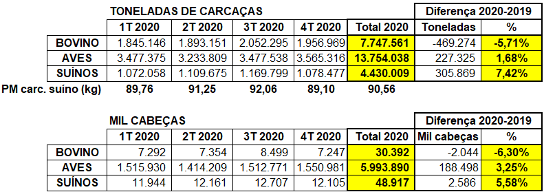 Une fois de plus, la viande de porc est la protéine animale qui connaît la plus forte croissance au Brésil. Cela se reflète dans les données préliminaires du quatrième trimestre 2020, publiées par l'IBGE en février, qui montrent que la production de viande porcine brésilienne a été assez importante l'année dernière, avec une croissance de 7,42% du poids carcasse par rapport à 2019, consolidant l'expansion du produit pour une nouvelle année consécutive.