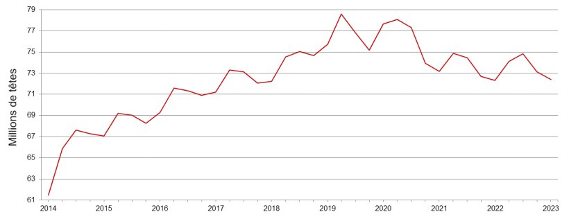 Effectifs trimestriels de porcs et porcs charcutiers aux États-Unis - 1er juillet. Source : USDA.