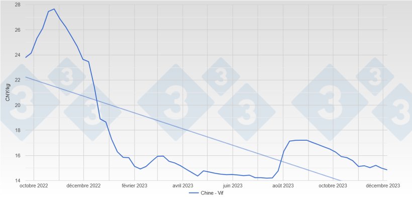 Par rapport aux prix des porcs vivants, comme le montrent les graphiques de notre section Économie, ils ont diminué de 43 % par an :