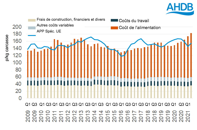 Cette hausse reflète principalement celle des coûts des aliments pour animaux, mais la main-d'œuvre et les coûts fixes ont également augmenté par rapport au premier trimestre de 2021.
