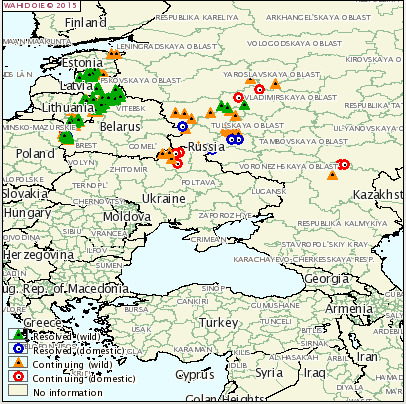 Au cours du premier trimestre 2015 ont été confirmé de nouveaux foyers en Lituanie, Leltonie, Pologne, Estonie et Russie, alors que, pour le moment, l'OIE n'a pas rapporté de nouveaux cas en Ukraine.