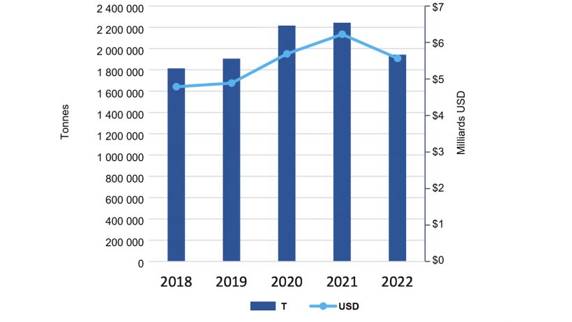 Les exportations de viande de porc du mois de septembre ont une fois de plus été menées par le Mexique, bien que les expéditions soient restées inférieures au volume de l'année dernière pour la première fois depuis le début de 2021. Les exportations de septembre ont totalisé 76.084 t, soit une baisse de 4,5 %, mais la valeur des exportations a tout de même connu une hausse impressionnante de 25 %, pour atteindre 176,4 millions de dollars. Au cours des trois premiers trimestres de l'année, les exportations vers le Mexique sont restées sur un rythme record à 696.802 t, en hausse de 12 % par rapport à l'année précédente, tandis que la valeur a augmenté de 15 % à 1,42 milliard de dollars.