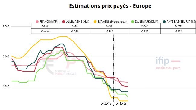 Prix stables en France et Allemagne, forte pression en Espagne à cause de la FPA, amélioration en Belgique et tensions persistantes en Italie.