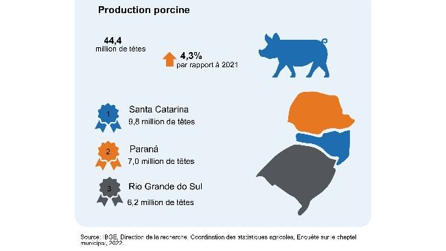 Selon les dernières estimations de l'USDA, publiées le 12 octobre, une diminution des effectifs de truies est attendue en Chine, dans l'Union européenne et en Amérique du Nord. En revanche, le Brésil devrait connaître une hausse significative de son cheptel de reproductrices, ce qui soutiendrait, dans une certaine mesure, l'offre mondiale de viande de porc.