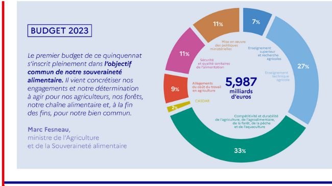 Le ministère de l'Agriculture et de la Souveraineté alimentaire a dévoilé, lundi 26 septembre 2022, le détail de son projet de loi de finances 2023.