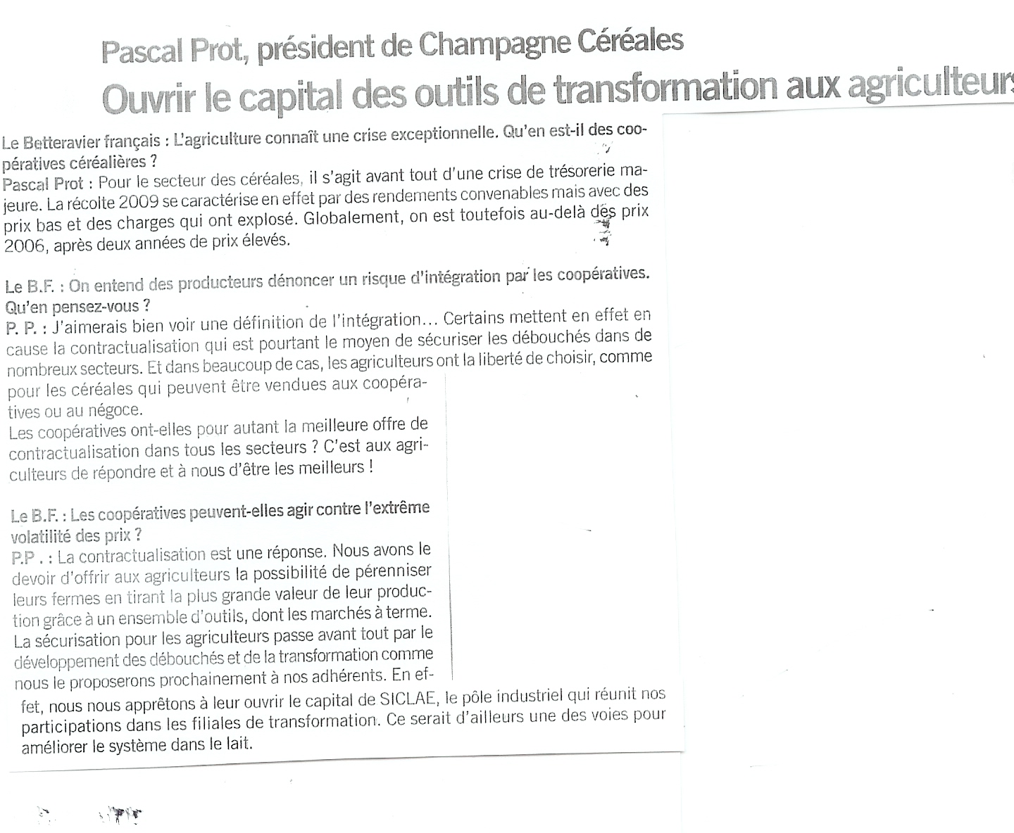 Le comble est que P prot est un des seul céréalier de champagne a être éleveur de porcs et qu'il site son montage comme étant une solution à la crise laitière. Ce qui me laisse penser que la crise porcine n'est pas encore arrivée en Champagne.