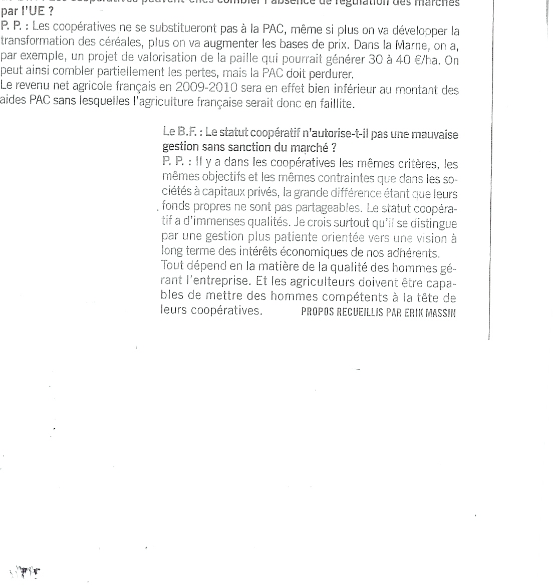 Mais c'est vrai qu'un mec qui est dépendant financièrement de sa coop. ne peut entendre certains propos et peut encore moins agir ! D'autres , plus libre se complaisent dans les avantages qu'ils y retirent. Alors ?...