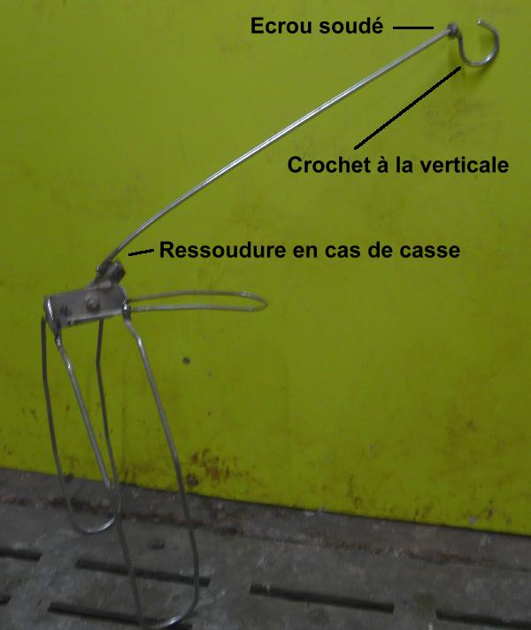 Donc, il suffit simplement de tordre ce crochet à la verticale et de souder un écrou pour que lors de l'agitation de la truie, le blister ne risque pas de glisser sur la tige.