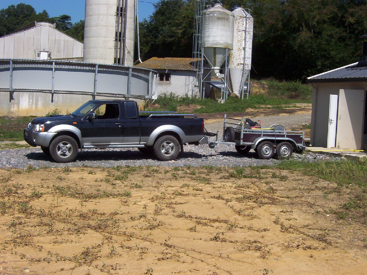beaucoup de porcheries sont équipées en materiel de lavage, donc je ne pense pas qu'il soit nécessaire d'ammener le matos. (risque de contaminations inter-elevages).