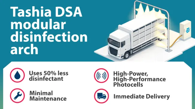 Disinfection arches cut the spread of diseases transmitted by contact with vehicles that may have been contaminated on other farms or external facilities (feed mills, slaughterhouses, etc.).