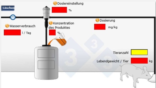 Dieser Simulator berechnet die benötigte Menge an Arzneimitteln, um bei Verwendung eines Dosierers über das Trinkwasser zu behandeln.