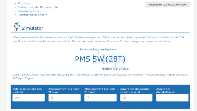 Vergleichen Sie Daten, berechnen Sie die Anzahl der Sauen-, Aufzucht- und Mastplätze und veranschaulichen Sie Ihre Aufgaben je nach Art des PMS.