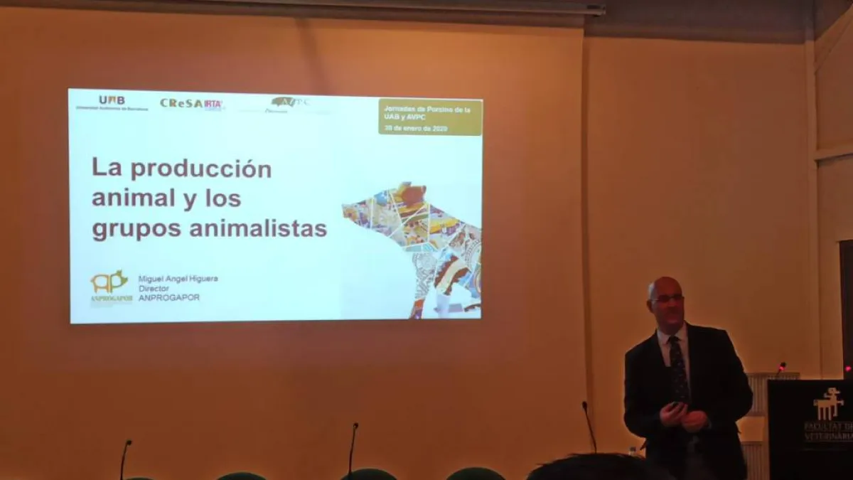 El inicio de las jornada UAB-AVPC dedicada a los grupos animalistas y la producción animal, con Miguel Ángel Higuera de Anprogapor