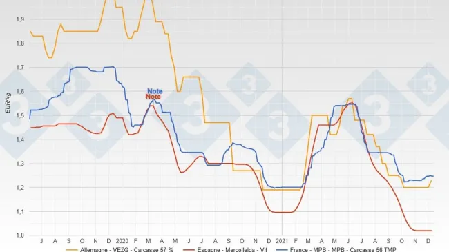 Dernières cotations des principales découpes de viande de porc. Historique des prix en différentes devises et au format graphique.