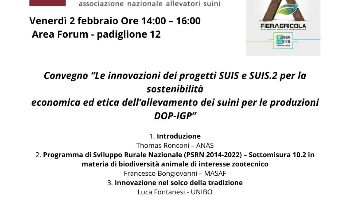 Convegno “Le innovazioni dei progetti SUIS e SUIS.2 per la sostenibilità economica ed etica dell’allevamento dei suini per le produzioni DOP-IGP”