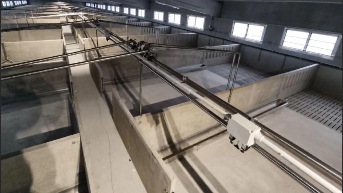 con linea discese ai truogoli e valvole a membrana in acciaio inox, ed impianto elettropneumatico protetto in tubazioni e scatole stagne.All’interno di nuovi capannoni realizzati con tutti i migliori accorgimenti per garantire benessere ai maiali