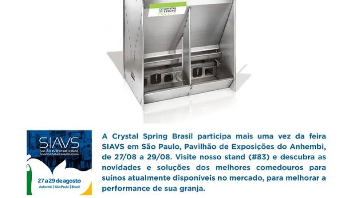 Crystal Spring estará una vez más en la SIAVS – Sao Paulo. Visítenos y descubra como innovación, tecnología y nuestro compromiso con excelencia y calidad pueden ayudarle en la performance de su granja.